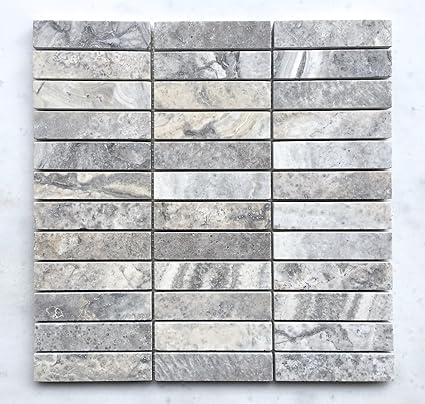 Silver 1x4 Honed Straight Edge Filled Travertine Mosaic Tile