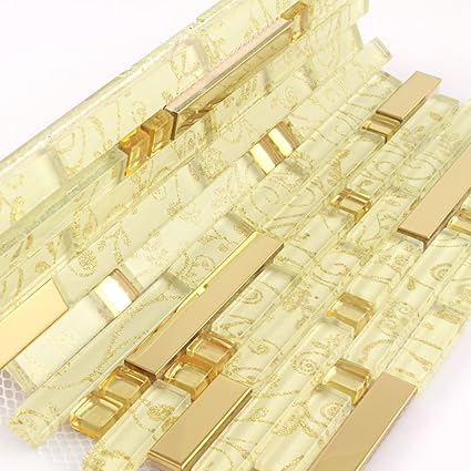 Gold Mirror Tiles Stainless Steel Yellow Glass Tile Backsplash