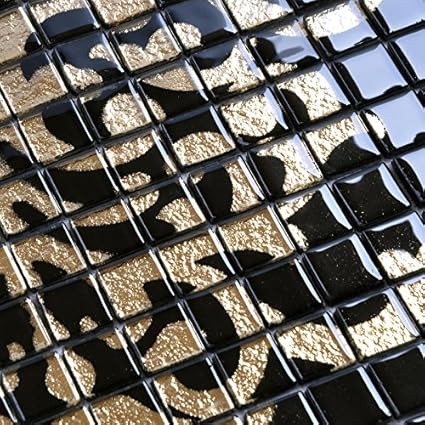 Glass Mosaic Tile Murals Black And Gold Crystal Backsplash Plated