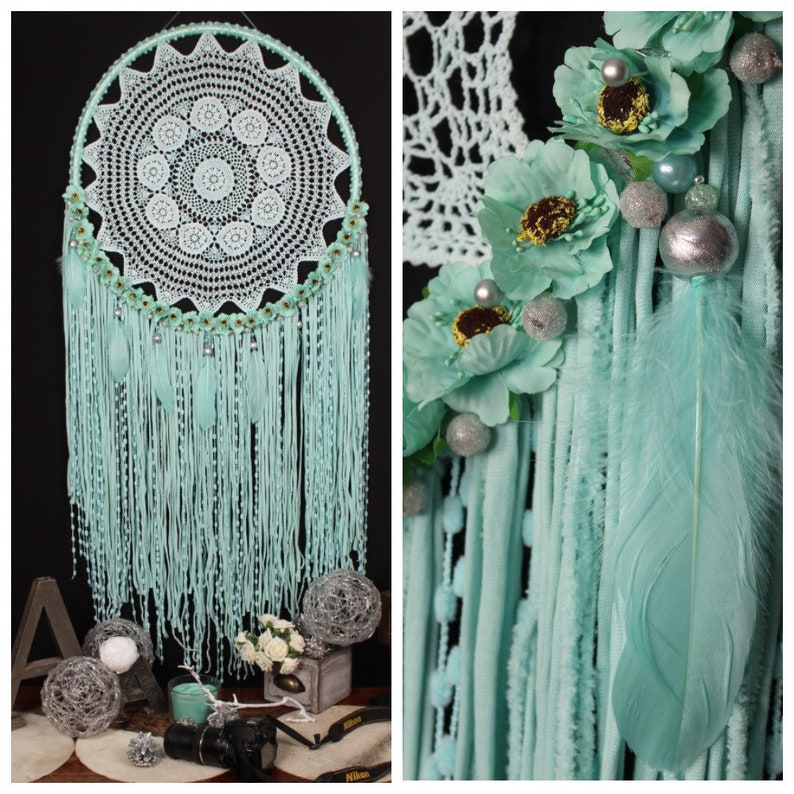 Large Mint Dreamcatcher Xxl Dream Catcher Home Decor Etsy