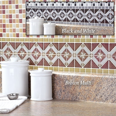 Diamond Tile Peel Stick Backsplash Border Set Black And White