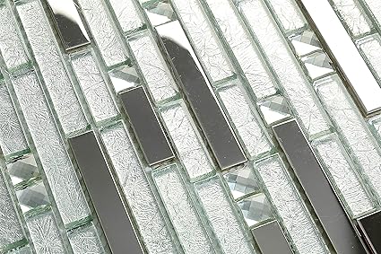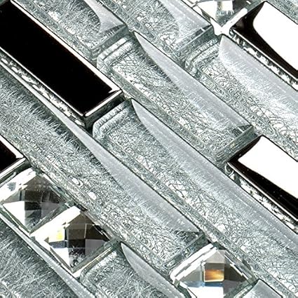 Strip Diamand And Glossy Stainless Steel Mixed Clear Glass Mosaic