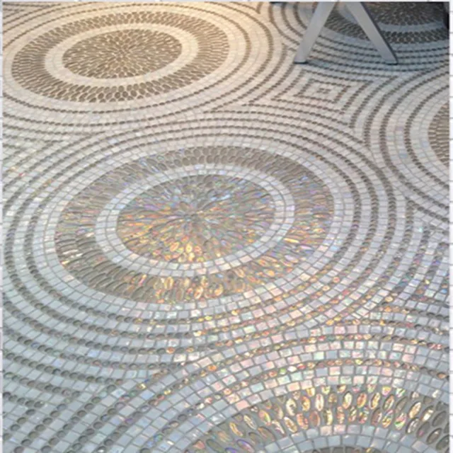 Customized Wheels Design Rhombus Iridescent White Mural Glass Mosaic