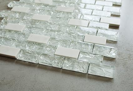 Glass Mosaic Tile Backsplash Kitchen Interlocking Glossy Crystal