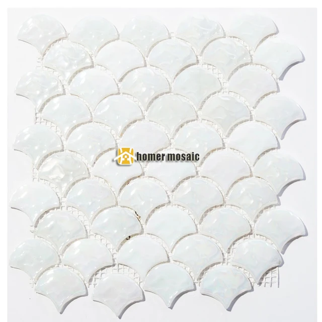 Backsplash Tile Shapes White Color Fan Shape Glass Mosaic Tiles For